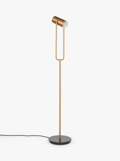 A cylinder task lamp with bold, mid-century characteristics. Showcasing a pivoting head with repeated hole-punched edge detailing. It can be directed downwards for normal desk use or turned upwards to give your space an ambient light. Presented in a warm plated finish.