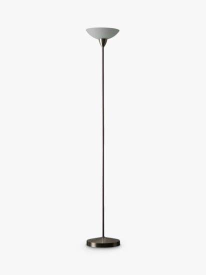 • This uplighter floor lamp is ideal for adding ambience to your room, especially as the frosted glass shade enhances a warm glow of light. It's a simple style, but the brushed finish of the metal gives it a smart and timeless look, at a brilliant price.